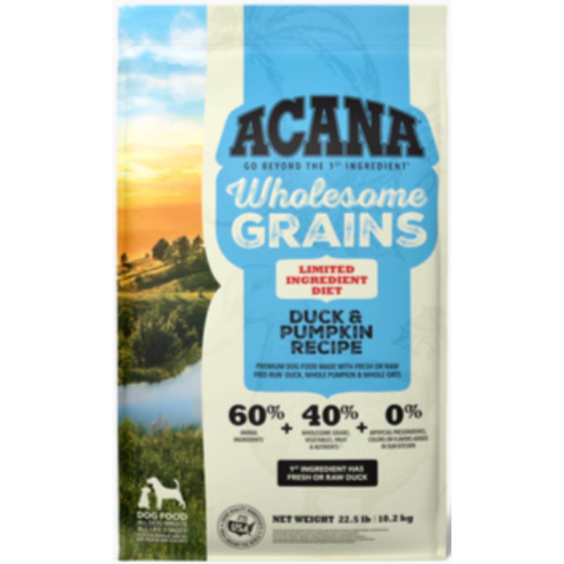 ACANA Wholesome Grains Limited Ingredient הנו מזון לכלבים המספק מקור חלבון אחד, פרוביוטיקה ו-60% רכיבים מן החי. מאוזן עם דלעת, שיבולת שועל ודגנים. כמו כן תומך בעיכול, במערכת החיסון ובבריאות הכללית של הכלב.