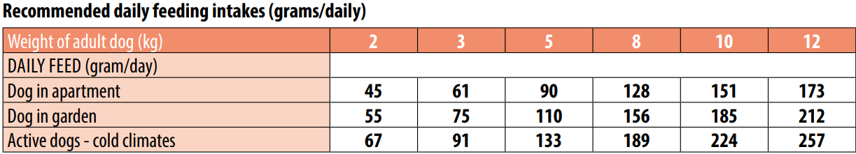 דגים (סלמון מיובש 34%, סלמון טרי 10%), אורז (15%), עיסת סלק מיובשת, שמרי בירה מומסים, חלבוני דגים הידרוליזיים, שמן דגים (שמן סלמון), מינרלים, מוצרי שמרים (מאנן־אוליגוסכרידים MOS 1%), קסילו־אוליגוסכריד (XOS 0.3%), יוקה שידיגרה (0.3%), קמח אצות (ספירולינה – Arthrospira platensis 0.3%), תוצרים מעיבוד צמחים (שורש אכינצאה פורפוראה 0.2%, אורגנו 0.1%), שום מיובש 0.2%, גלוקוזאמין, כונדרויטין סולפט.