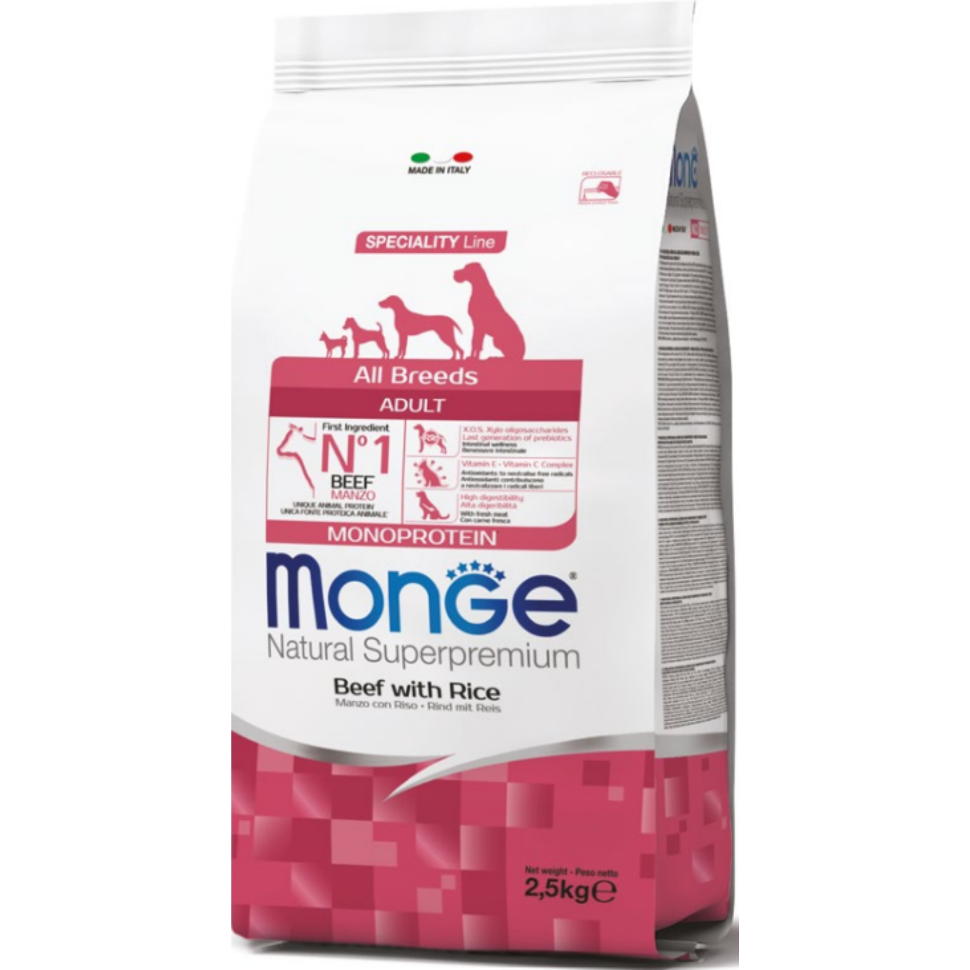 מזון יבש לכלבים בוגרים מכל הגדלים, מבוסס בקר עם אורז. חלבון יחיד, פרוביוטיקה (XOS), תוספי צמחים, ויטמינים נוגדי חמצון E ו-C. משפר עיכול, טעם ובריאות כללית. ללא צבעים וחומרים משמרים.